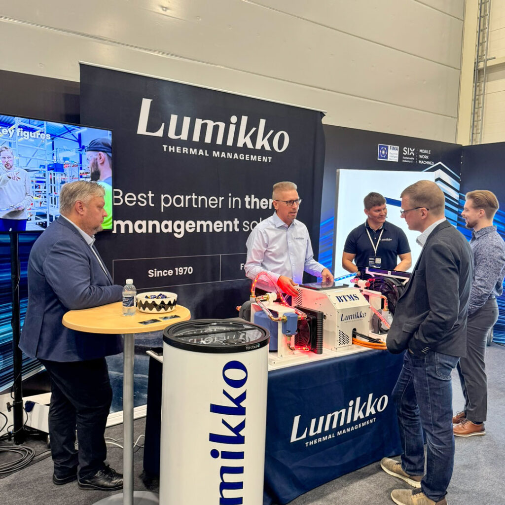 Kiitos vierailusta Lumikon ständillä Six Future Mobile Work Machine 2025 -messuilla. Jos et ehtinyt ständillemme, tai etsit tietoa messuilla esittelemästämme tuotteesta, ei hätää: kokosimme kaiken tälle sivulle. Lumikko suunnittelee ja valmistaa lämmönhallintaratkaisuja sähköisille työkoneille haastaviin olosuhteisiin. Ensimmäiset akustojen lämmönhallintaratkaisumme liikkuville koneille on suunniteltu jo reilut 10 vuotta sitten.