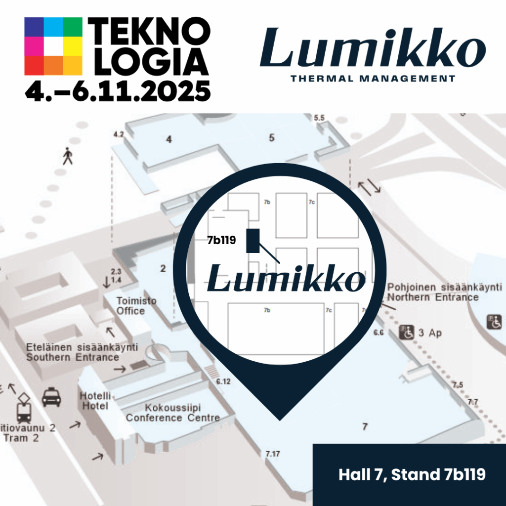 Lumikko esittelee ständillään 7b119 lämmönhallintaratkaisuja sähköistymisen ja puolustusteollisuuden tarpeisiin. Näytillä on muun muassa: