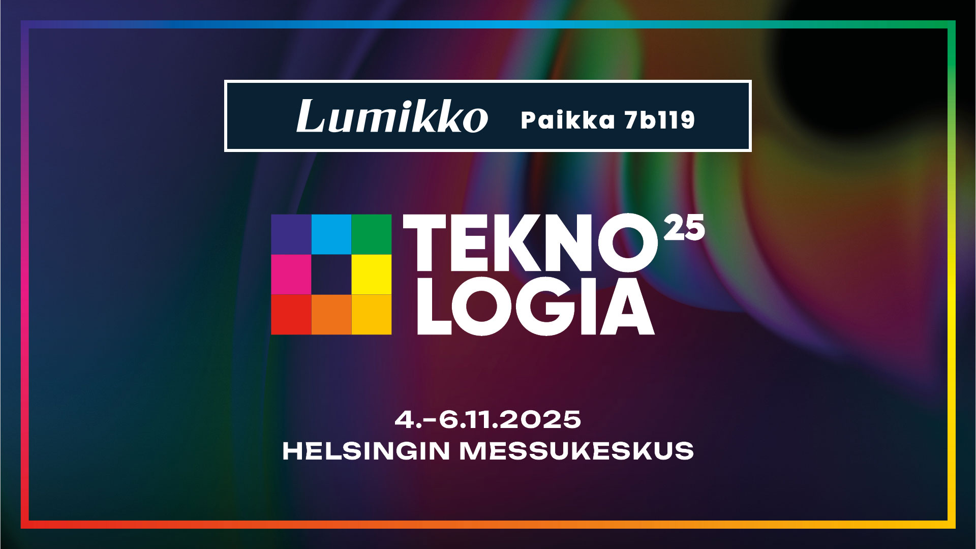Lumikko osallistuu vuoden 2025 Teknologia 25 -tapahtumaan, joka järjestetään Helsingin Messukeskuksessa 4.-6.11.2025. Teknologia 25 on Pohjoismaiden merkittävin teollisuuden ja teknologian tapahtuma, joka kokoaa yhteen alan johtavat yritykset, asiantuntijat ja päättäjät. Tapahtuma tarjoaa ainutlaatuisen mahdollisuuden nähdä, mitä teollisuuden ja teknologian huipulla tapahtuu juuri nyt.